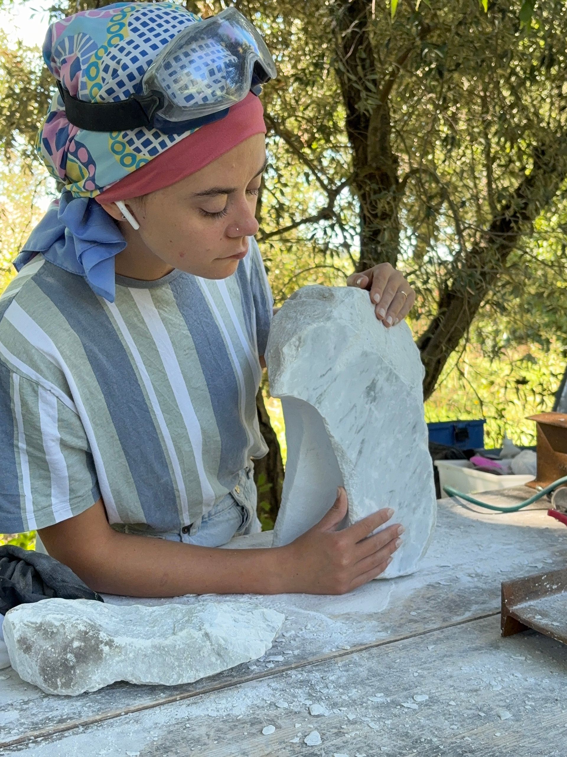 Participating in this residency has brought me back to the core of my own research, which has long circled around marble sculpture as an entry point into deep time. Marble is literally time embodied, a stone metamorphosed over millennia, carrying the memory of the earth’s geologic evolution. I am drawn to marble both because of its physical form as an ancient material and as a conceptual contrast to our fleeting sense of human time. When marble is carved and shaped by human hands, these vast timescales collide.
