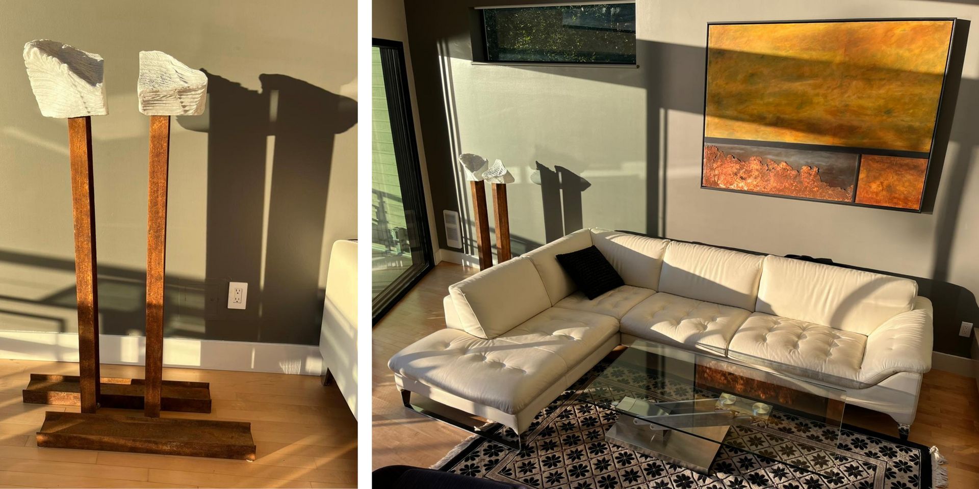 For a while I felt the need to focus almost exclusively on marble because of the complexity and demands of learning how to sculpt and transform the material. Recently, however, I have been intentionally combining it with steel to create bases and structures that lift my sculptures off the ground. The bases first emerged out of necessity and began with stacking beams, but have since developed into structures that support the marble and integrate more intentionally with the carved forms.