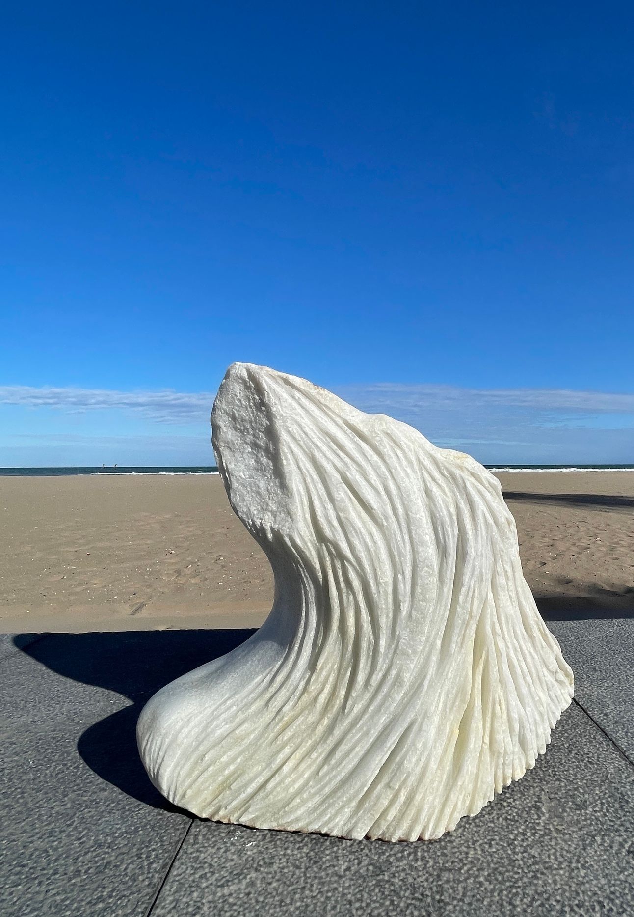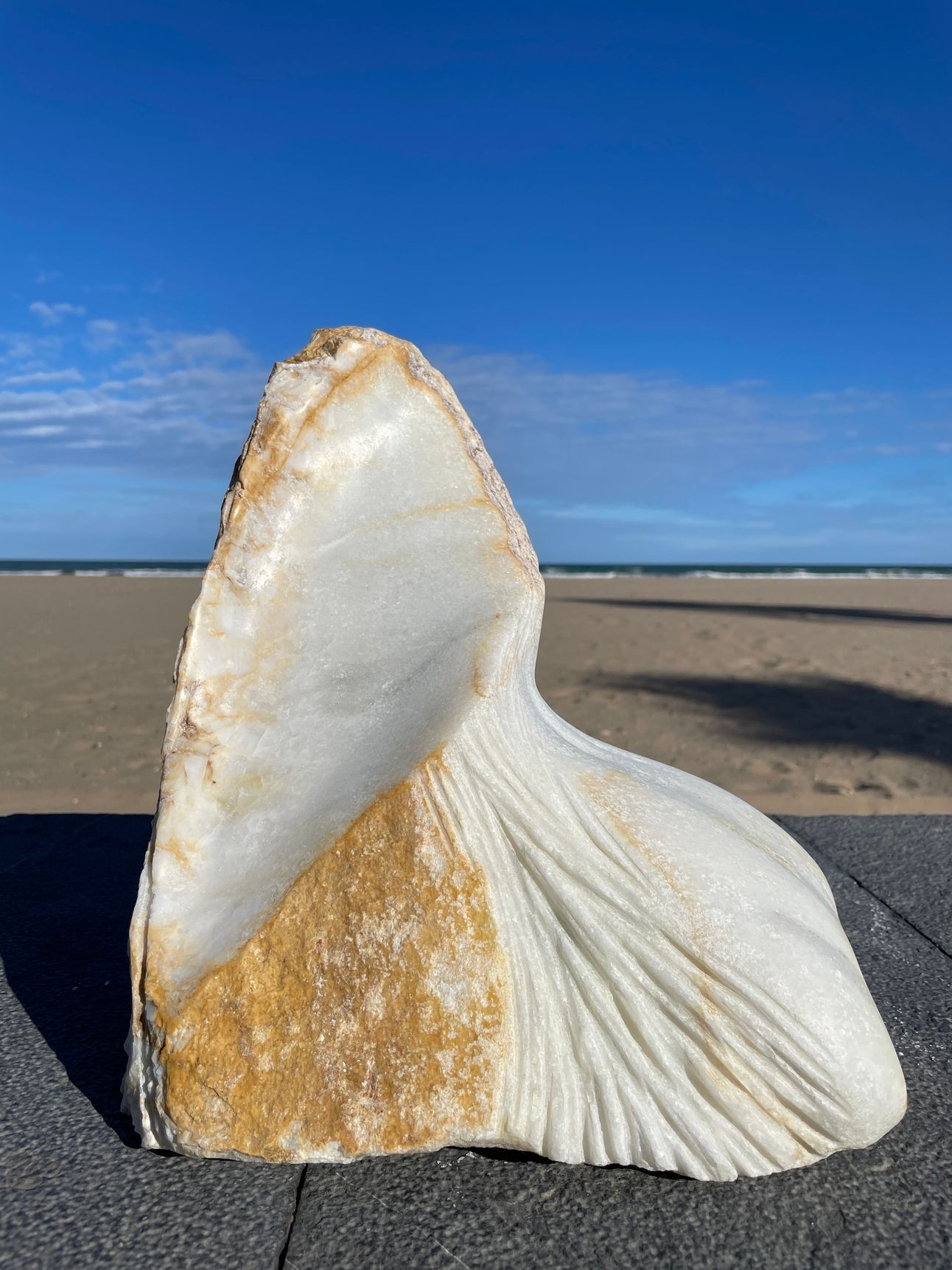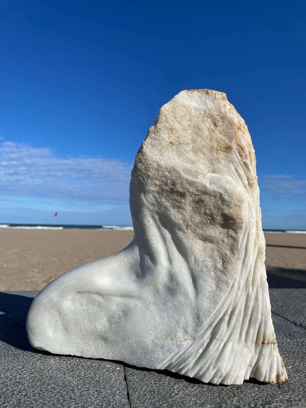 The work aims to prompt reflection on the human form in and on the landscape, inviting contemplation of the land itself, the stone that makes up and gives structure to our planet, and in this case, the nature of marble as a material randomly created in a mysterious alchemical process millions of years ago. I find great solace in this thought — being with something that was made millions of years ago. I believe there is power and energy in this concept and in this physical form, offering an opportunity to reflect on geological deep time and contextualize our own lives as a mere moment within it.