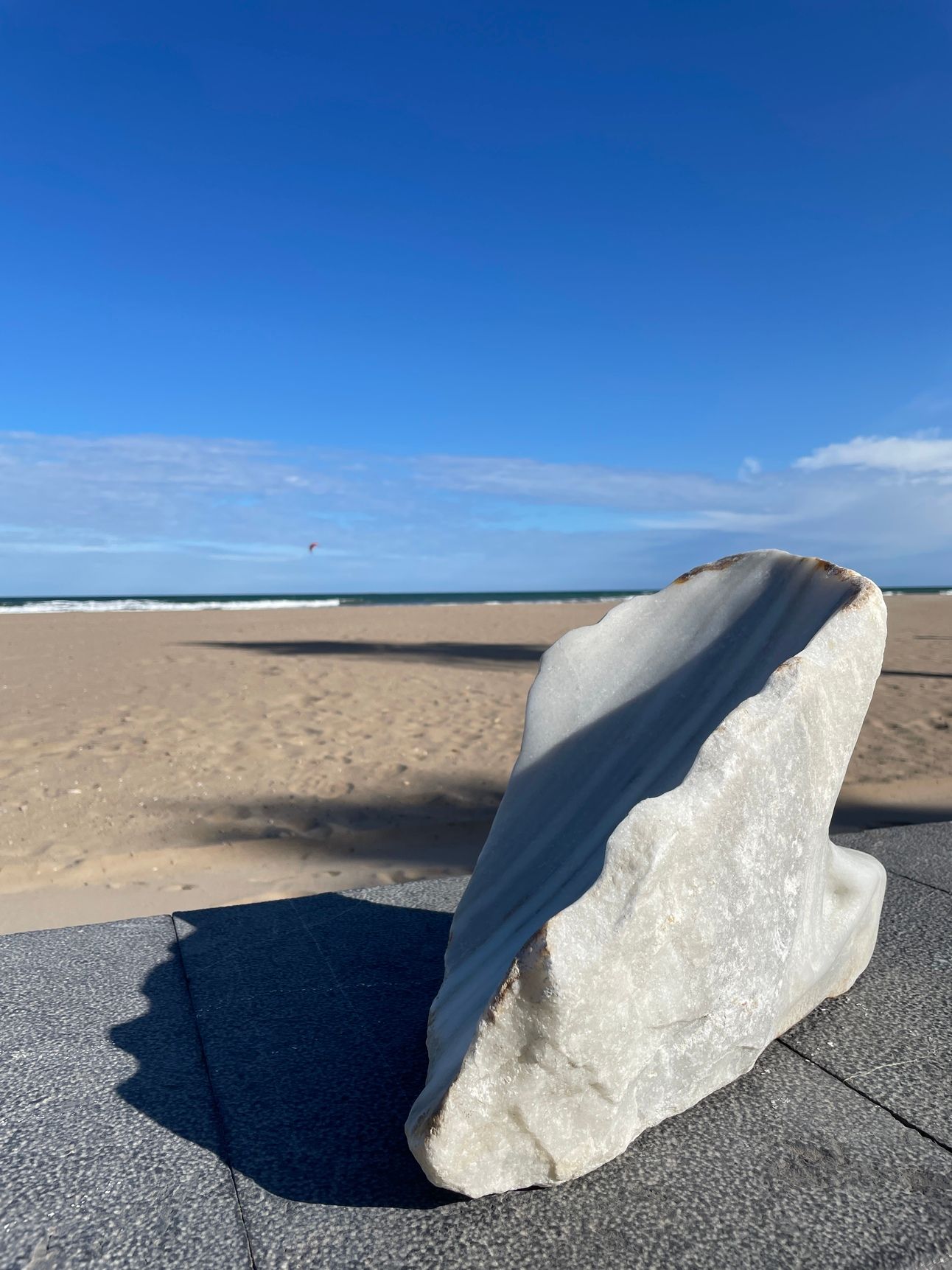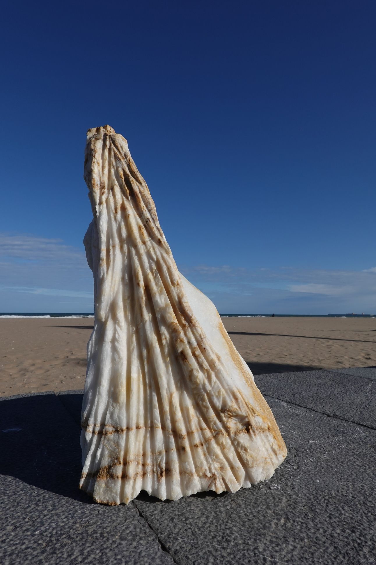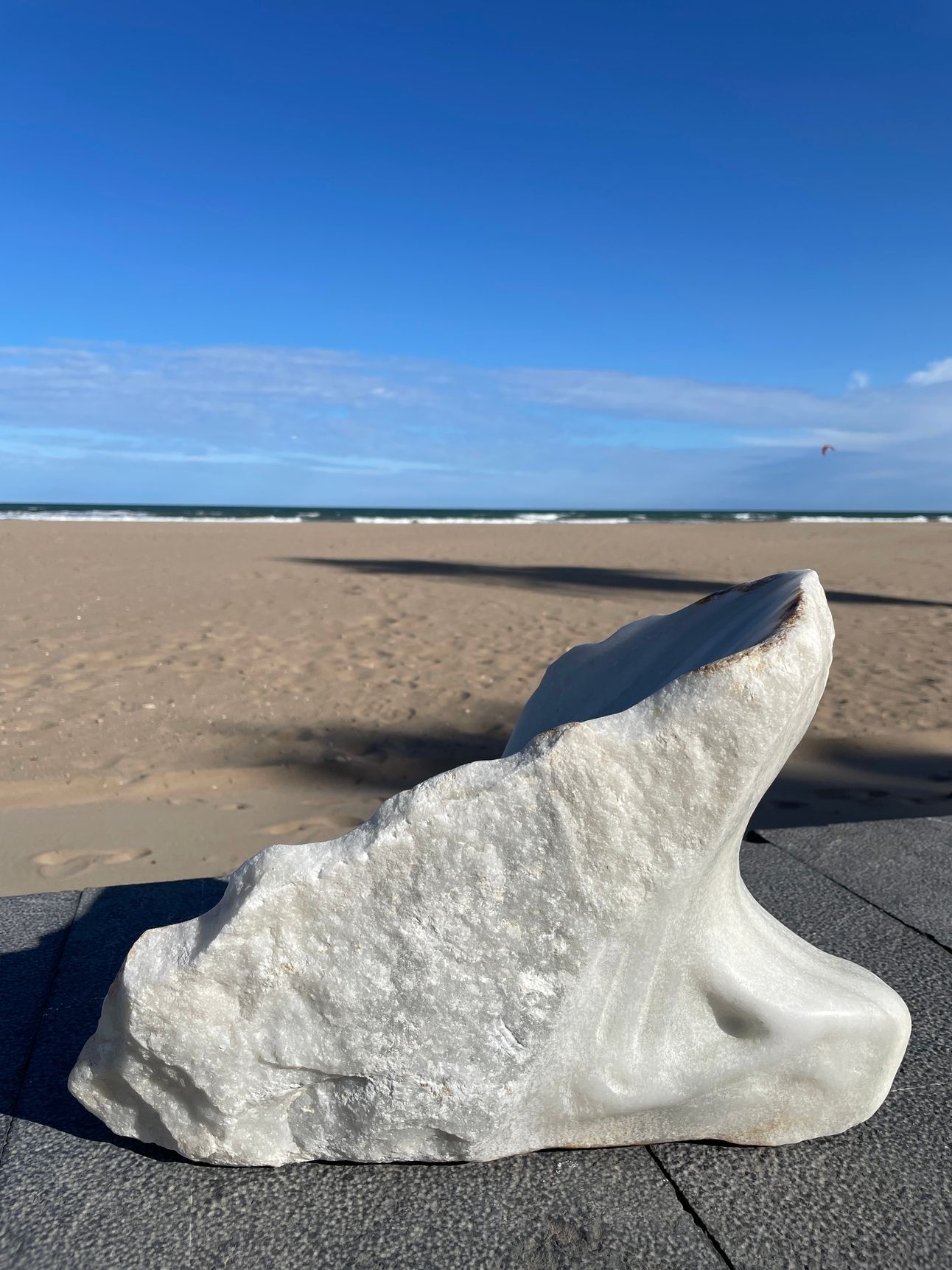 The work aims to prompt reflection on the human form in and on the landscape, inviting contemplation of the land itself, the stone that makes up and gives structure to our planet, and in this case, the nature of marble as a material randomly created in a mysterious alchemical process millions of years ago. I find great solace in this thought — being with something that was made millions of years ago. I believe there is power and energy in this concept and in this physical form, offering an opportunity to reflect on geological deep time and contextualize our own lives as a mere moment within it.